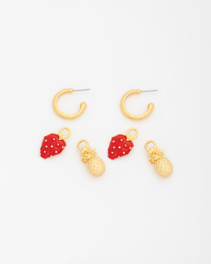 - Incluye: 1 par de candongas 3 en 1 con dijes intercambiables.