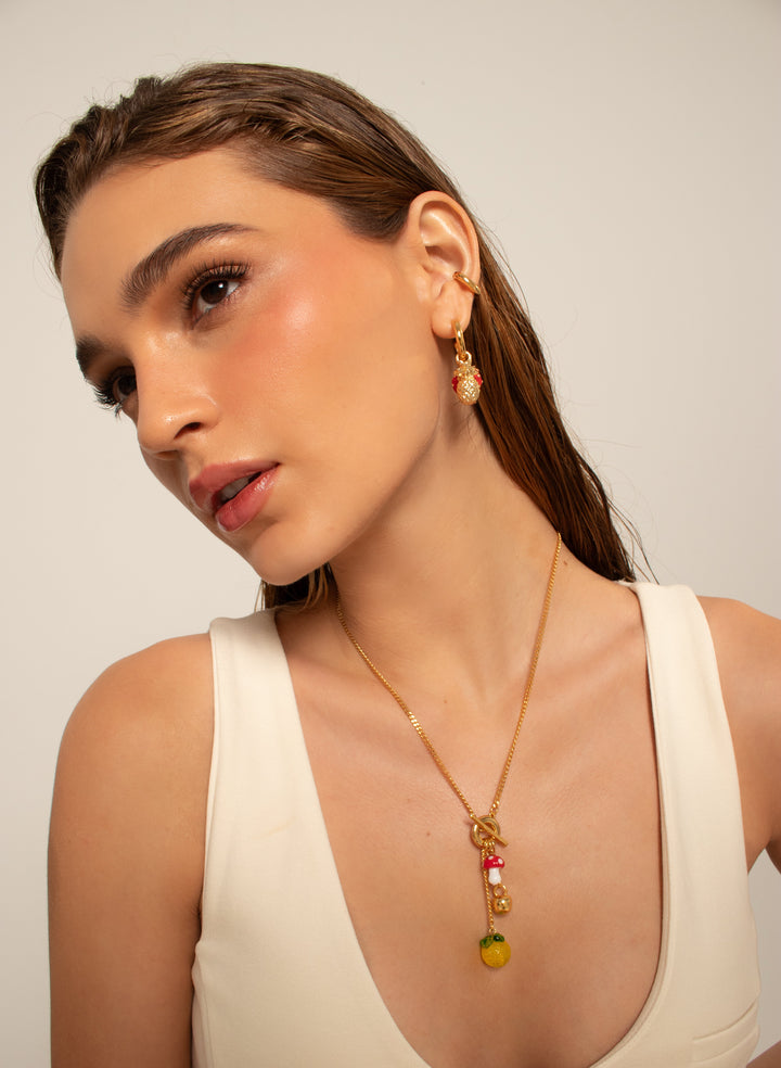 - Aretes elaborados Zamak (aleación de metales) con baño de oro de 24k.
