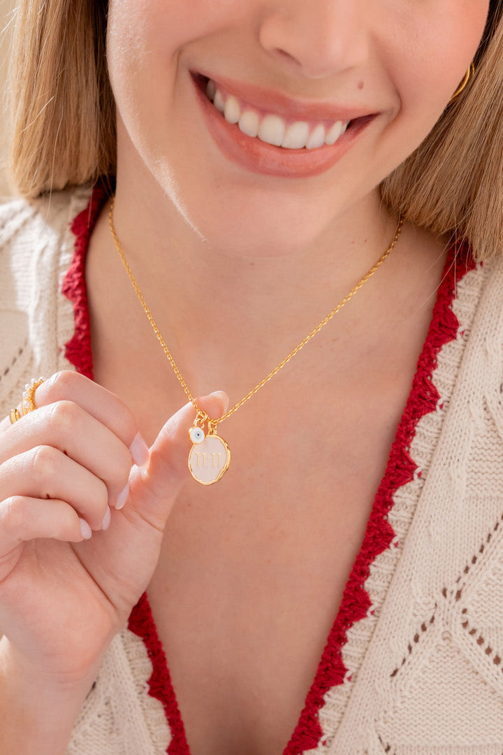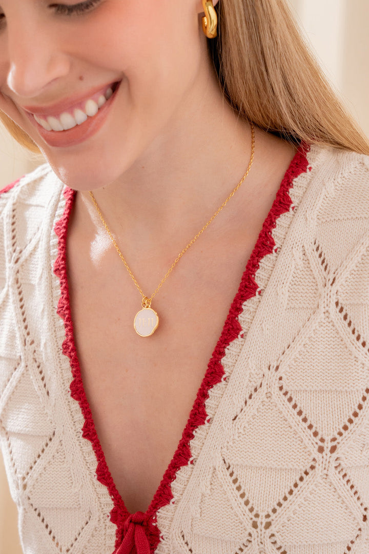 - Dijes del collar en Zamak (aleación de metales) con baño de oro de 24k.