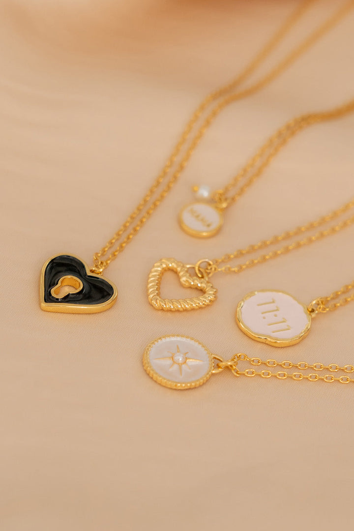 - Dijes del collar en Zamak (aleación de metales) con baño de oro de 24k.