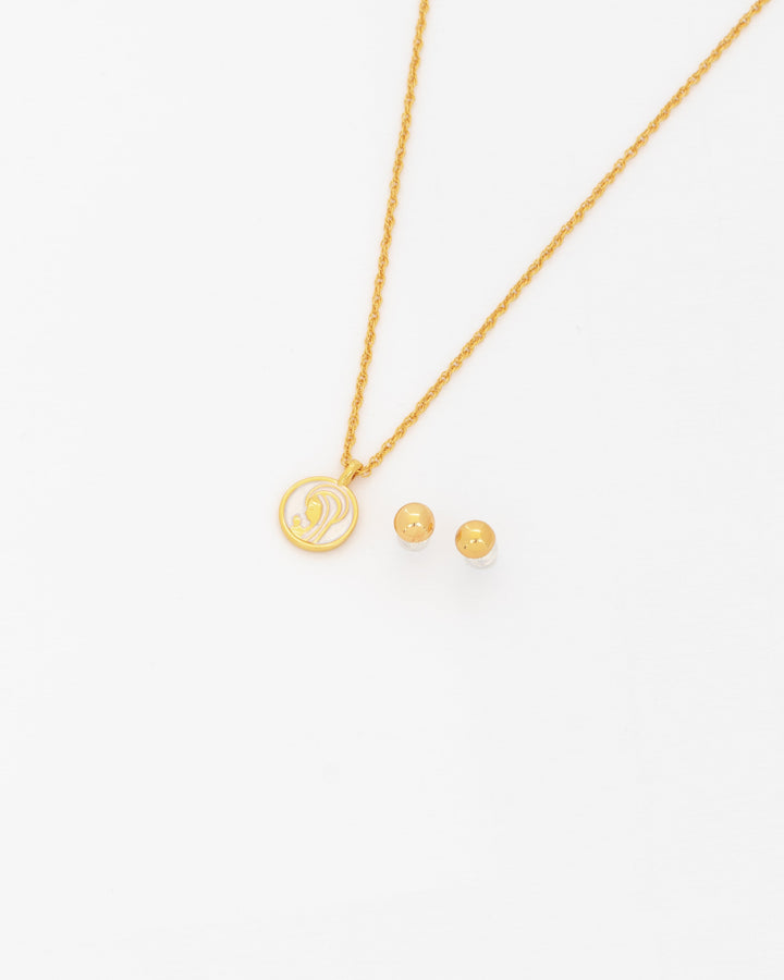 - Dijes del collar en Zamak (aleación de metales) con baño de oro de 24k.