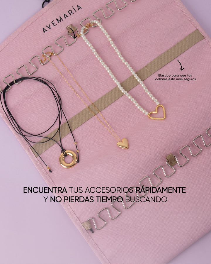 Luce y organiza tus accesorios como nunca! Con nuestro exclusivo organizador, cada collar, anillo y pulsera encuentra su lugar ideal. Perfecto para tener todo a la mano y con el estilo que mereces. Dale a tu espacio un toque de elegancia y funcionalidad en un solo producto. Haz que cada día elegir tus accesorios sea tan emocionante como usarlos.