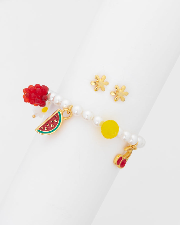 Pulsera Broche Frutas + Aretes