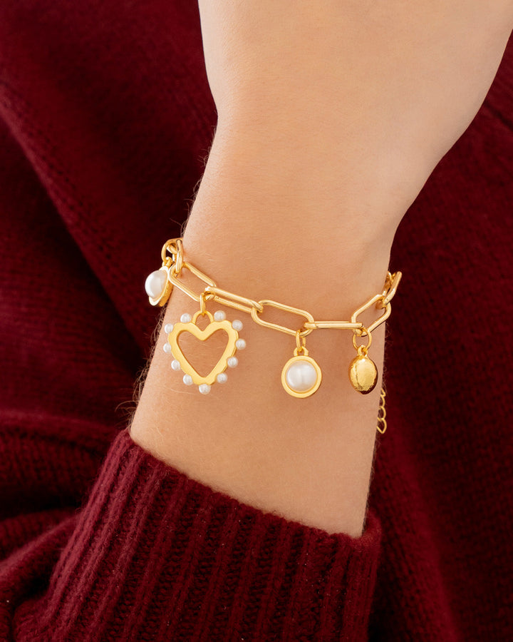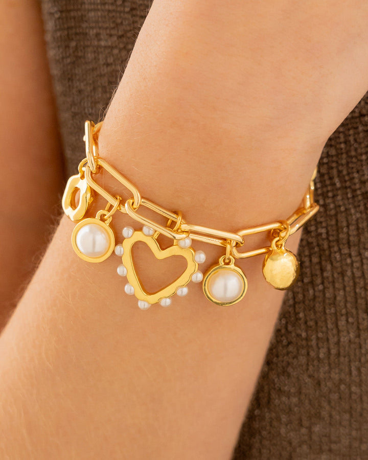 - Dijes de la pulsera en Zamak (aleación de metales) con baño de oro de 24k.
