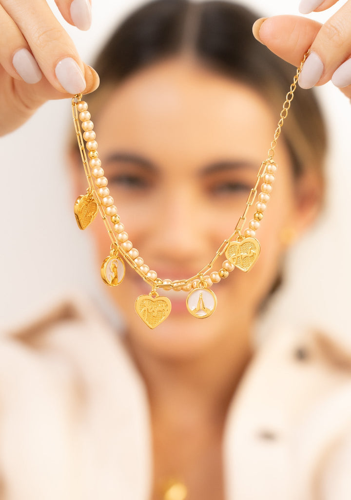 - Incluye: 1 pulsera con la oración de Ave María en sus dijes con caja especial