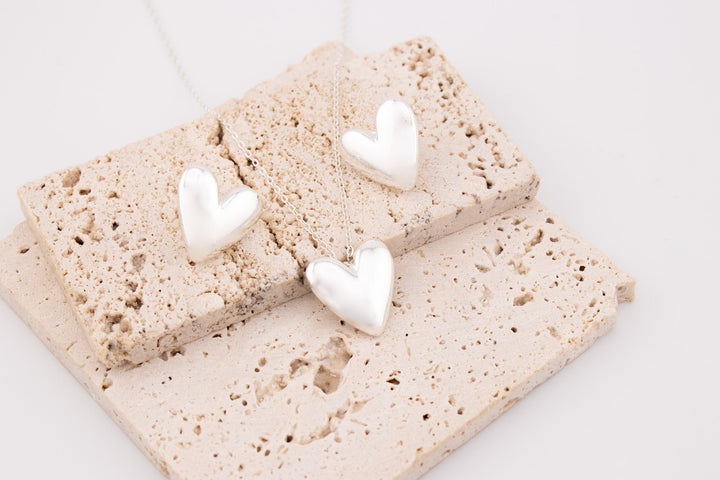 - Incluye: 1 cadena con dije corazón liso, 1 par de topos corazón liso.