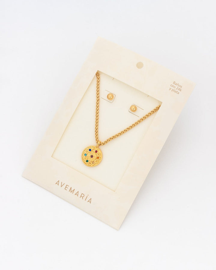 - Dijes del collar en Zamak (aleación de metales) con baño de oro de 24k.