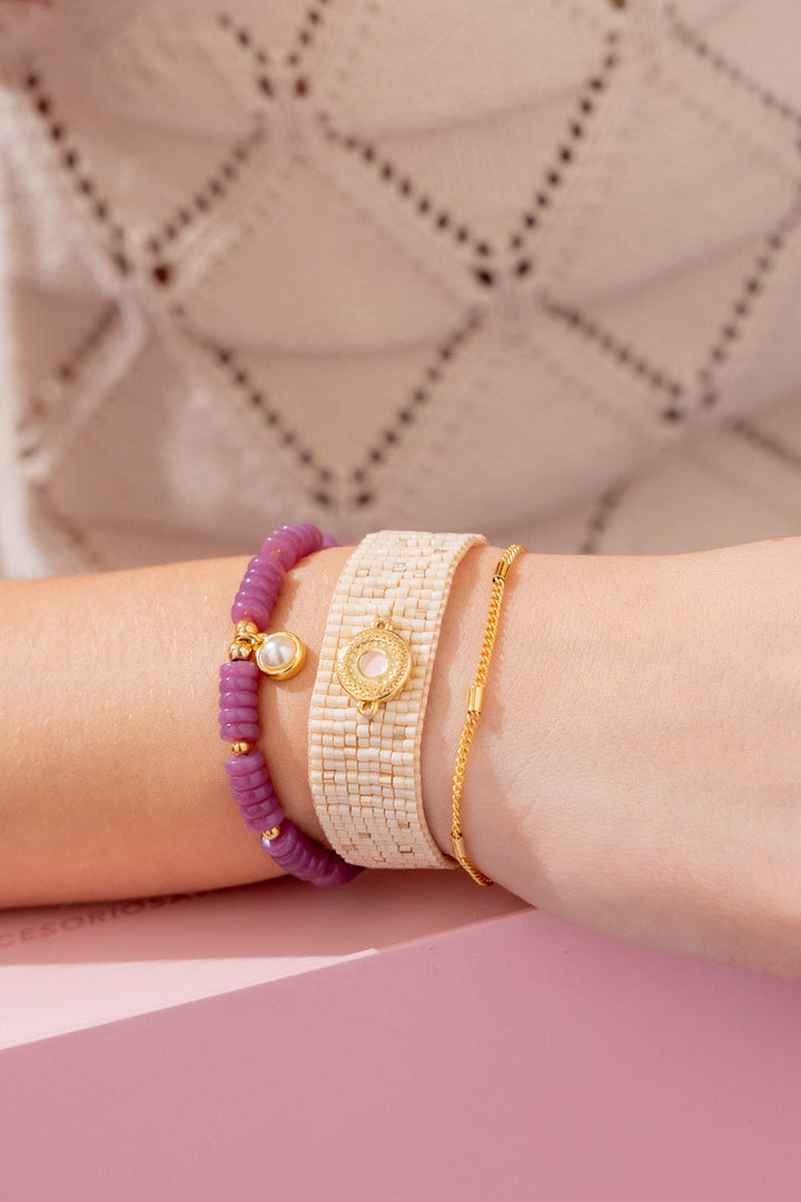 - Dijes de la pulsera en Zamak (aleación de metales) con baño de oro de 24k.